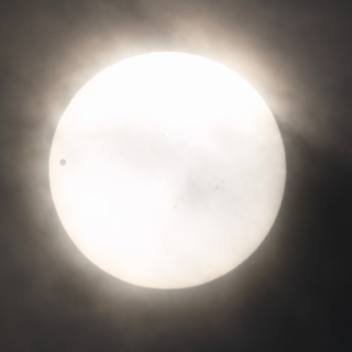 金星の太陽面通過 天気予報は曇りだったんで、この間の月食に関してぶーたれたバチがあたったんだと思っていたんですが、薄雲を通して撮影することが出来ました。今年はこういう件に関しては運があったのかもしれませんね-。 目測ピントリングいじって、きっちりピント合わせていないので、ちょっと像が甘いですが、黒点も写ってるみたいです。 時間的には、第2接触から40分ほどのところかな。 前の記事 次の記事 コメント コメントの投稿 コメントの返信 コメント (スタイル用のHTMLタグを使えます) 名前 電子メール URL サインイン情報を記憶