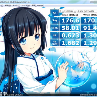 SATA2接続環境ですが、シーケンシャルリード/ライトが170MB/sec以上出るんですねぇ、今の1TBプラッタの玉は。