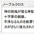 お財布はすっからかんになりましたが、なんとかノーブルクロス作成できました。トータルで30Mちょいかかってるかなぁ。コインが高めのしか見つからなくて。