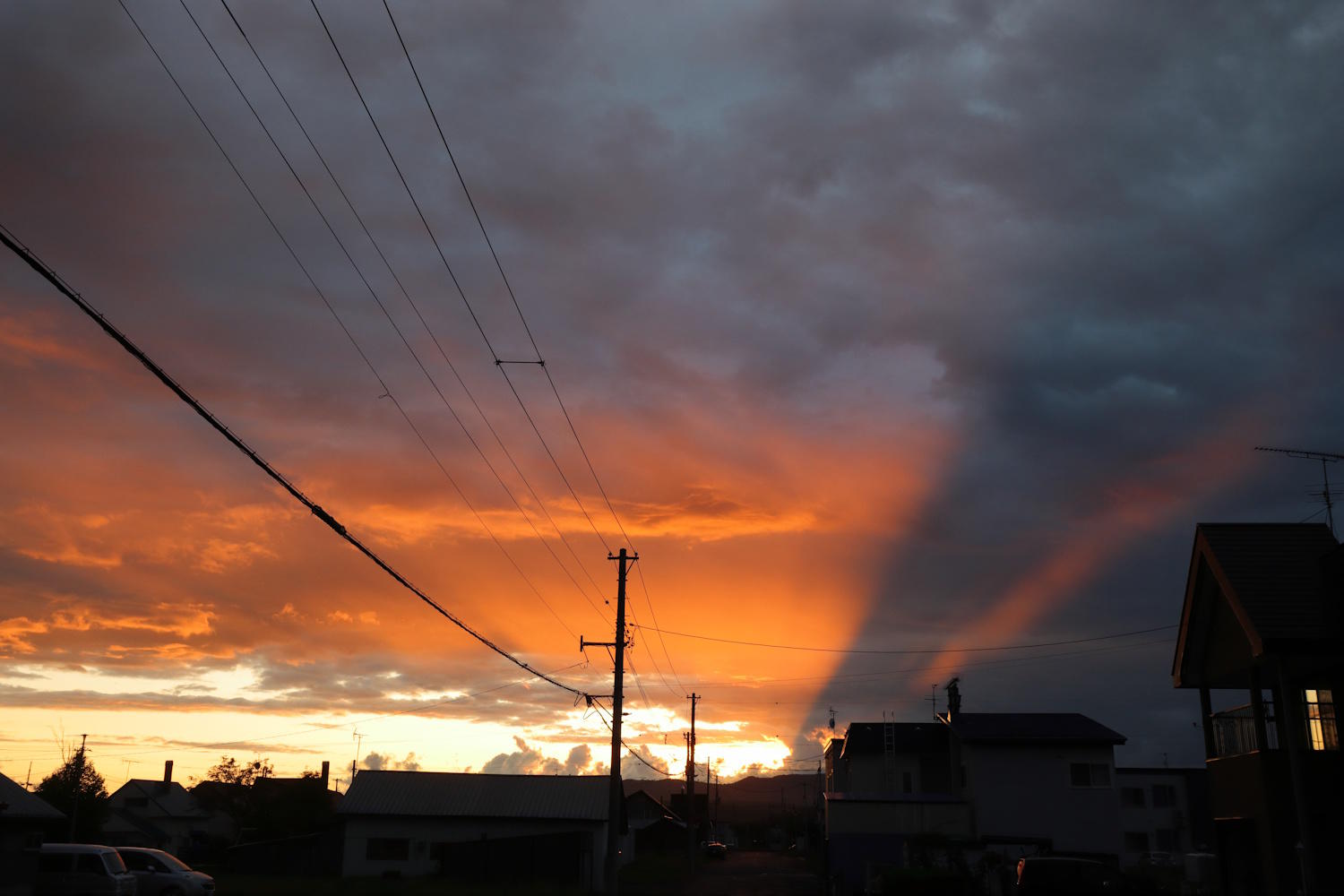 半分だけ爆焼けだったり逆天使の梯子状態だったり。